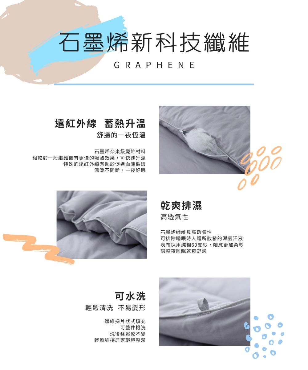 • 內容物:100%聚酯纖維(含石墨烯纖維)