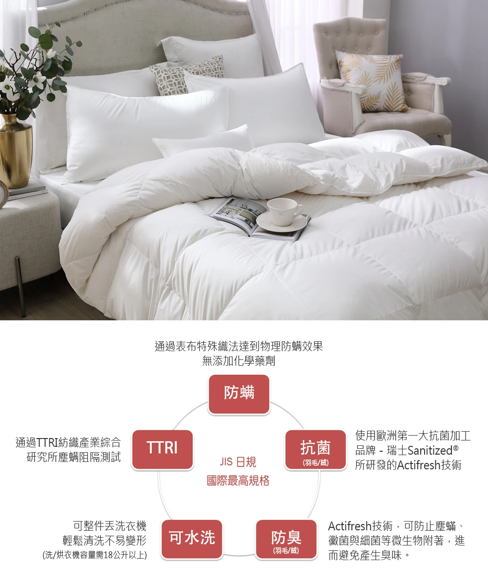 - 本產品可水洗、可低溫烘乾,洗/烘衣機容量需18公升以上,並請使用中性洗滌劑。