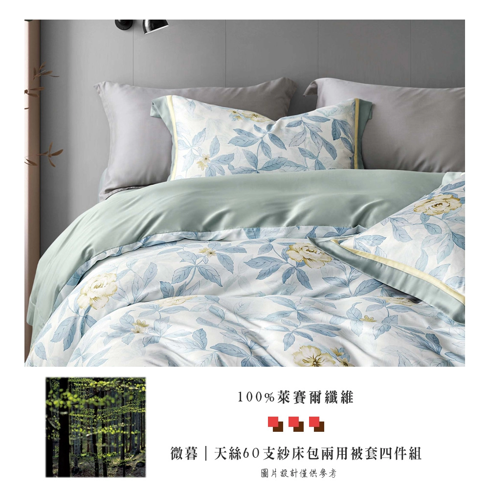 雙人|60支100%天絲兩用被床包四件組-微暮