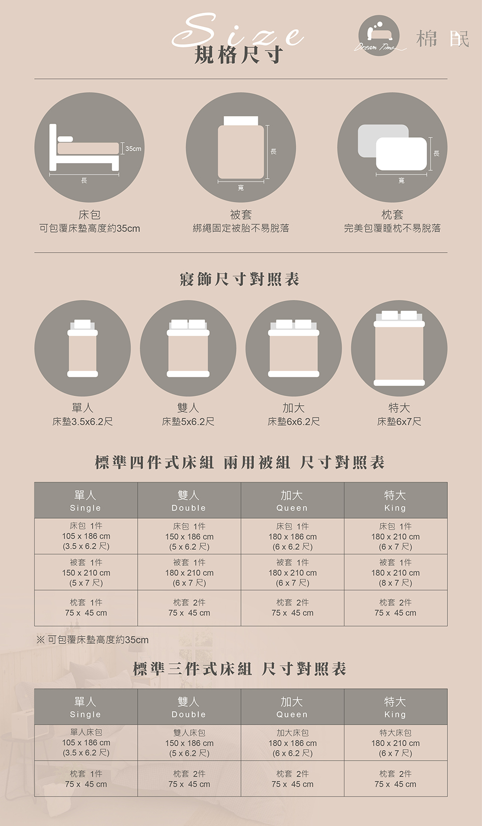 - 鋪棉兩用被套x1件(6x7尺/180x210公分)。