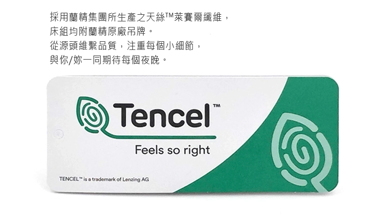 - 表布:100%萊賽爾纖維(天絲) 60支紗