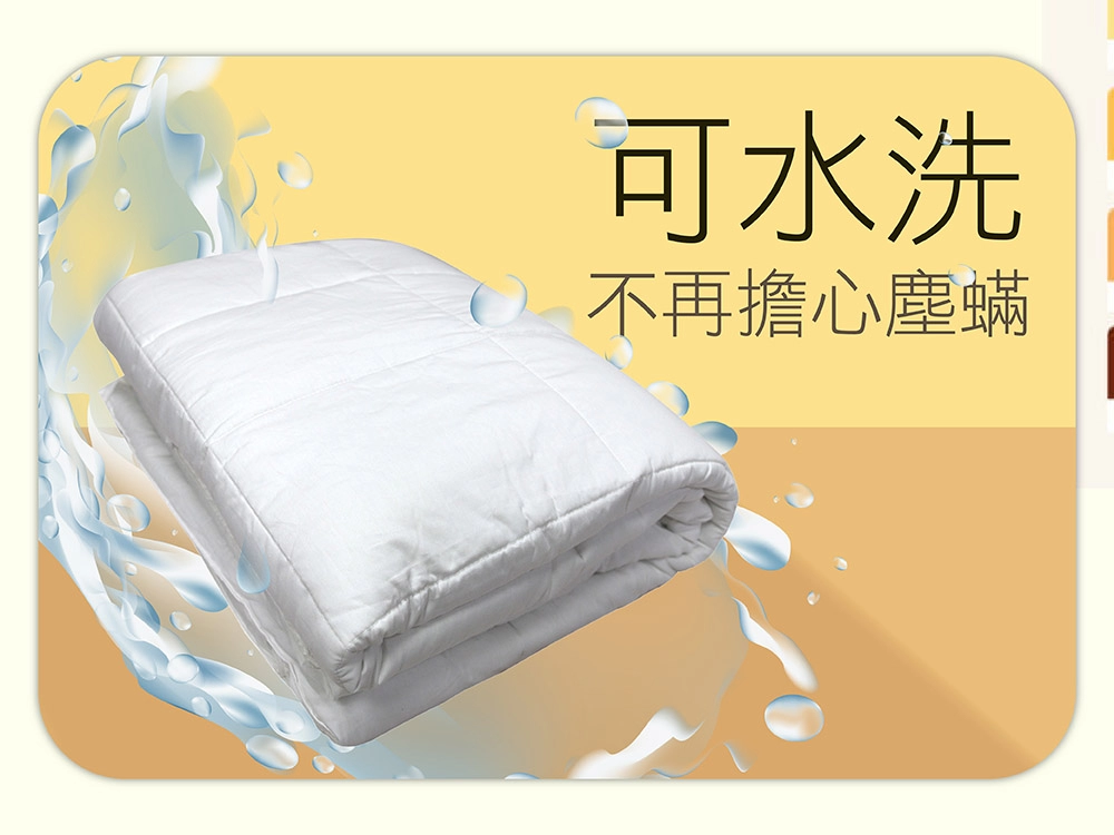 - 清潔保養方式:可水洗,需於陰涼處懸掛晾乾。另可選擇有陽光的好天氣,在通風良好之處進行日曬,輕拍保持彈性和蓬鬆度,延長使用壽命。
